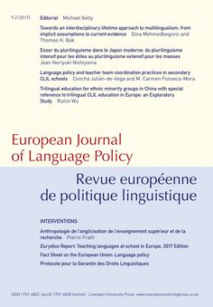 The European Journal of Language Policy/Revue européenne de politique linguistique is a peer-reviewed journal published by Liverpool University Press, in association with the Conseil européen pour les langues / European Language Council. It has appeared twice yearly since 2009, with a record of rapid review and dissemination.
